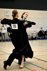 Den Abschluss des ersten Meisterschaftstages bildete Sophia mit ihrem Start in der Solo Hauptgruppe BAS. Mit nur zwei weiteren Konkurrent*innen musste sie nicht um einen Platz im Finale kämpfen, sondern durfte zur Sichtung einen Solo-Solo-Walzer zeigen - und die ganze Fläche nur für sich genießen. Nachdem sie im Finale dann alle fünf Tänze präsentiert hatte, durfte sie auf den 2. Platz des Treppchens klettern. Damit hat sie sich nicht nur Platz 2 (3) im Turnier ertanzt, sondern auch den Titel der Vizelandesmeisterin!